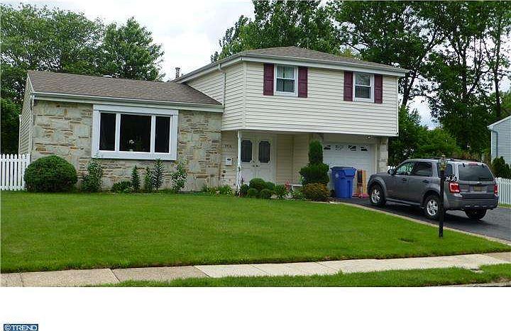 Welcome to this 4 bedroom, 2.5 bath split level single in the Brookwood Estates subdivision of Bensalem. Double entry doors to welcome you into a ceramic tile foyer entry. Stunning hardwood floors throughout living room and dining room. Decorative hand rails with hardwood steps separate the foyer from the living room, with new picture window and deep sill. Dining room with chandelier and chair rail. Walk into the ultra-modern eat in kitchen with stainless appliances. Includes a double door refrigerator, double sink, microwave, built in dishwasher, solid cherry wood cabinetry, granite countertops, gorgeous stone backsplash, gas 5 burner range, angeled ceramic tile flooring, recessed lighting and an island top with plenty of cabinets and drawers for additional storage. Large family room with ceiling fan, gas fireplace, and exit to rear patio. Remodeled powder room. Additional finished rec room/basement with pool table and Tiffany pool lamp, berber carpeting and an exit to the rear yard. Laundry space with storage and washer and dryer included. The master bedroom features an abundance of closet space, hardwood floors, ceiling fan and a 3 piece ceramic tile master bath. Second, third and fourth bedrooms all with hardwood floors and nice sized closets. Fourth bedrooms includes recessed lighting and ceiling fan. Other amenities: above ground pool, pull down storage attic, 1 car garage w/opener, new shingle roof, new garage door, humidifier, water softener system, new siding, new windows, stone front exterior and newer heater and air conditioner. Plenty of outdoor space for entertaining! Fenced yard extending around to the spacious side yard. Make your appointment today!