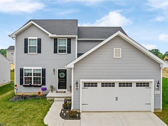 WELCOME HOME to 3436 Timber Trail in Green. SELLER IS OFFERING OWNER FINANCING OPTION AT 5.5%. Why build for more, when you can have it now? This property is tucked away in a prime location. The home includes roughly 2000 square feet, three bedrooms and 2.5 baths. The first floor offers an open floor concept including tons of natural lighting. The kitchen is large including island, stainless steel appliances and granite countertops. The great room offers a stone gas fireplace adjoining the eat-in kitchen area. The space is open and inviting. There is an office space located off of the foyer with French doors offering privacy. Coloring throughout is light and neutral. Located off of the garage is a mudroom with lockers and 1/2 bath. Tasteful wallpaper accent walls are located in both entry spaces (foyer and mudroom). The second level includes master suite including double closets and full bathroom. Additional two bedrooms share full bath. There is a second floor laundry. The basement is