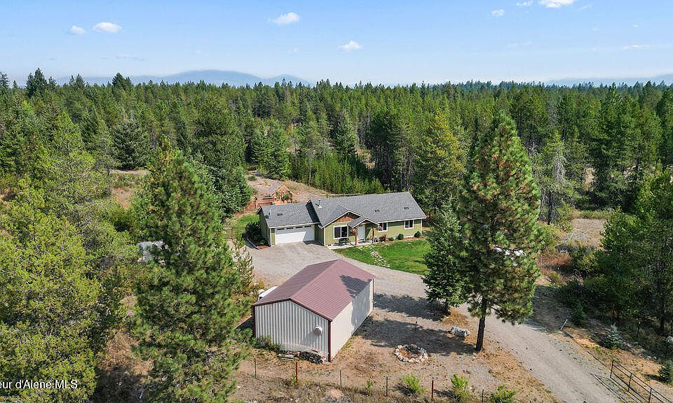 This lovely single-level home shows like a new, with comfortable living throughout. The kitchen features an island, granite counters, stainless steel appliances & ample cabinet space. High ceilings fill the space with natural light, while a gas fireplace warms the family room. Venture outside to the back deck, perfect for morning coffee or evening BBQs. A garden greenhouse allows you to grow fresh vegetables year-round, while the smart hybrid heat pump & heat condenser keep the home efficient in every season. The property also includes a 30' x 20' shop with a concrete floor, 220 amp power, insulation, built-in workbenches, and convenient side doors. 2 sheds provide extra storage, and a gated electric entrance ensures privacy & security. Nature lovers will appreciate the abundant wildlife and endless outdoor possibilities. Located between Lake Pend Oreille to the east and Spirit Lake to the west, w/Twin Lakes nearby. Liberty Lake & CDA are just 30 minutes away.