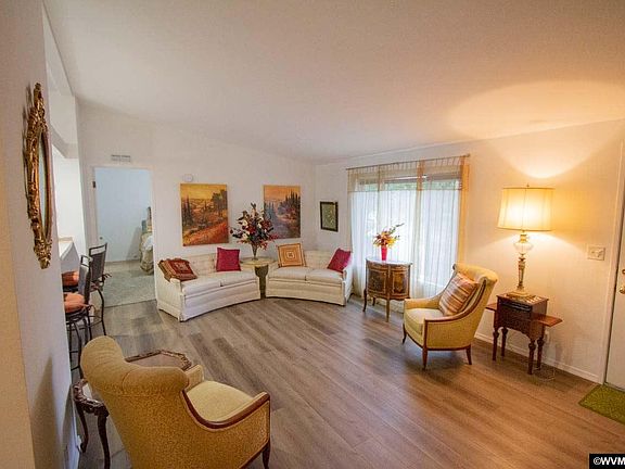 New Vinyl Plank flooring greets you as you enter this tastefully updated home. Thoughtfully designed with a split bedroom floorplan that creates open, spacious rooms that are taped and textured. The kitchen is open to the living room through a breakfast bar. Plentiful cabinetry has a crisp, clean feel that is accented with a full tile backsplash. The modern feeling continues with neutral, warm colors and new carpet in the sleeping areas. The master suite is an oasis of privacy the flows through the master bathroom that features a large soaking tub plus a step-in shower and a dual vanity. Two additional bedrooms are perfect for working from home or the occasional over night guest. Each bedroom features a walk-in closet and easy access to the 2nd bath. Enjoy the peaceful surroundings from the cover deck or the fenced yard. This home is tucked away, making for a private and restful location that overlooks a park-like setting behind the home. Single carport keeps your vehicle out of the rain. Located on a quiet street with ample amounts of wildlife, close to Corvallis; the new paved bike path into town is perfect for bike commuters. The community dock will be available for day time use on a private lake in this community owned co-op once time return to normal. The community is member owned through a non-profit cooperative and home comes with a membership in the cooperative.