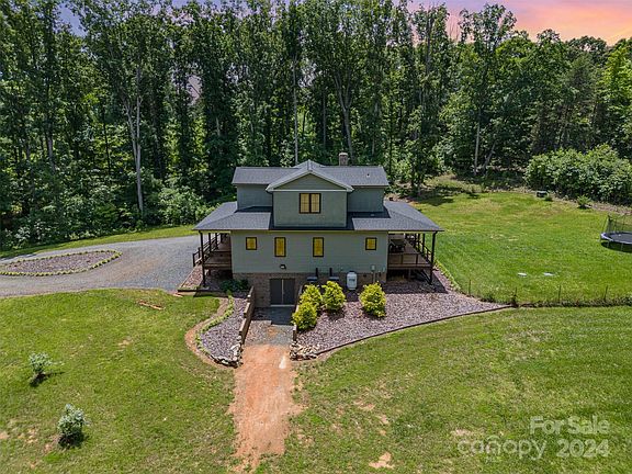 Hideway on  your own 20-acre wooded wonderland in New London, NC! This 2018 built, custom home is tucked away from the hustle-and-bustle and still an easy commute to Charlotte, Concord or Salisbury (even Greensboro in about 1 hour drive). Set upon a large yard this home has over 2500 sq ft. of HLA, a full basement, and large porches for expanded outdoor living. Some custom features include an arched, handcrafted front door, on-demand hot water heater, and dual laundry rooms. The primary suite has a flex space for exercise/office use or it could be upfitted as a bonus walk-in closet. Upstairs, have your pick of 2/3 rooms that qualify as bedrooms (septic permit states 3 bed), a spacious bathroom with dual vanities and additional bonus area. Downstairs let your imagination run wild in the unfinished basement. It’s rough plumbed for a future bathroom. Also great for storage! Spend time outdoors where the grass yard expands and leads into a forest of pines, complete with a large pond.