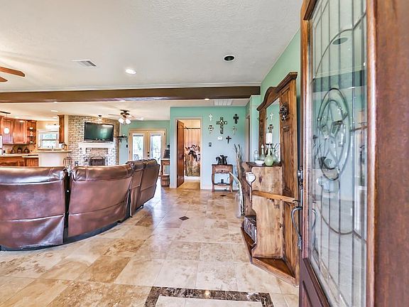 Country charmer on 7+ ac. w/great access to 290 & close to new Waller Elementary school.Fully updated gorgeous Brick home w/new doors,windows,wood + travertine floors,cabinets,bathrooms.Granite in Kitchen & Baths. Glazed curved fireplace centers to large open living area w/travertine flooring.Nice fenced back yard w/large deck for get togethers.4 stall barn,storage barn w/covered RV or trailer parking.6.3 ac ag exempt!3 separate pastures!Energy efficient!New aerobic septic.Recent fences.WOW!
