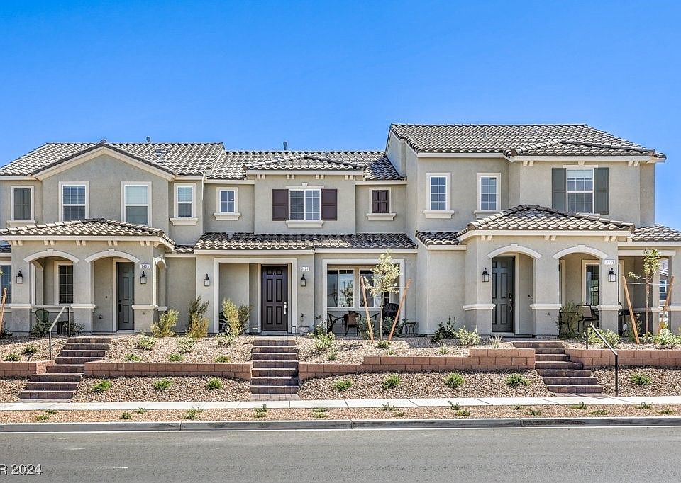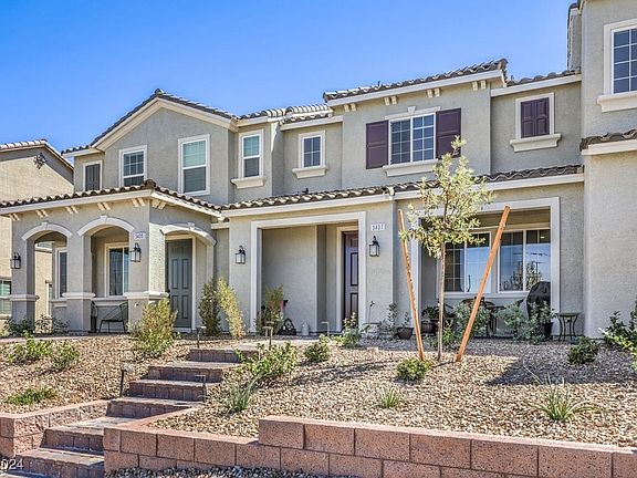 Highly upgraded townhome w/Dual Suites! Energy Star certified home, fire sprinklers, dual-zone HVAC system, smart thermostat, 9' downstairs ceilings, upgraded bathtub, & extended patio. Kitchen boasts quartz countertops, upgraded cabinets, breakfast bar, W/I pantry w/custom door, & stainless steel appliances. Spacious great room w/ recessed lighting, Shaw wood look vinyl plank flooring, & Smartbox media center. Both BR suites feature a W/I closet, tub/shower combo, quartz countertops & linen storage. 2nd floor laundry room, under stair storage, tankless water heater & water conditioner. Front CV patio & finished 2 car garage w/insulated garage door. Builder warranty until 3/2025! Across from Montagna Park featuring a sports field, walking trail, pickleball court, picnic ramada, baseball field, playground, splash pad, more! Inspirada includes pools, basketball & tennis courts, dog park & playgrounds. Easy access to I-15, conveniently located near shopping, dining & entertainment!