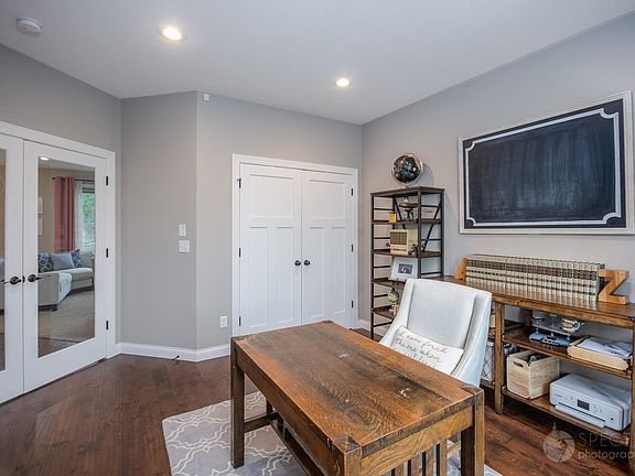 Designer finishes including timeless traditional mill-work and stone with farmhouse style touches! This beautiful 5 bedroom 4 bath two story home with attractive and professionally landscaped yard showcases views of the 'no neighbors' back yard. The upper level has a 2 full bath, laundry, 4 bedrooms including huge master suite with separate vanities, heated floors, walk in closet, tile shower and tub! Expand to the lower level family room for game day, and you will also find another bedroom, full bath with heated floors, and huge storage! Indoor Sonos system, Maintenance free deck and outdoor entertainment space just off the kitchen. Gas line to deck. beautiful stone fireplace, large 3+ car garage, and so much more in this beautiful home!