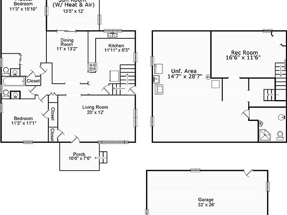 Charming 2-bedroom, 2.5-bath ranch on a spacious .66-acre lot with a blend of modern updates and room to grow. Major improvements include new electrical and plumbing (2021), and new windows throughout most of the home (2018–2022). Both bedrooms were updated with fresh paint, carpet, trim, and lighting in 2020. The main bath was fully gutted and renovated in 2019, and a brand new full bath was added downstairs. The sunroom features a new roof, drywall, trim, doors, fan, and its own heating/cooling unit (2021). The kitchen includes a newer dishwasher (2022) and updated flooring (2025). The full basement offers a partially finished room with tons of potential. Outside, enjoy a fenced yard, wood deck, and oversized 2.5-car garage with workshop space. Additional updates include a newer furnace and A/C. Water heater (2020). A perfect starter home in a great location!