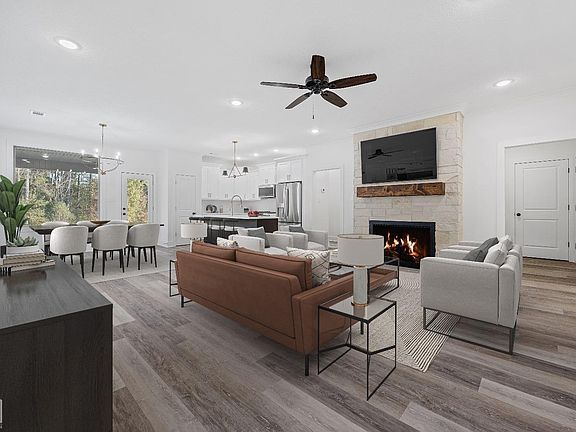 Welcome to this stunning new construction home located in a secure gated community, offering both privacy and peace of mind. With a spacious 2650 sq ft layout, this home boasts an inviting open concept design, perfect for modern living and entertaining. The heart of the home features a gourmet kitchen complete with a gas stove, kitchen island, and a convenient walk-in pantry. Gather around the warmth of the gas fireplace in the living area, creating a cozy atmosphere on chilly evenings. Escape to the luxurious master suite, featuring elegant tray ceilings, a double vanity, a soaker tub, and a separate walk-in shower in the master bath. The master closet even provides direct access to the laundry room for added convenience. On the main level, you'll find an additional guest bedroom and a full bath, providing flexibility for guests or a home office. Upstairs, discover two generously sized bedrooms, a spacious bonus room that could easily serve as a 5th bedroom, and a third full bathroom. Step outside to the expansive covered back porch, complete with its own gas fireplace, providing the perfect spot to relax or entertain while enjoying the outdoors. This home offers a perfect blend of comfort, style, and functionality, making it an ideal choice for those seeking a contemporary and secure living environment.
