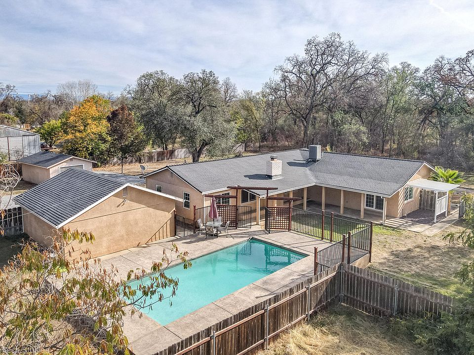 Totally remodeled perfect family home with inground pool in South Shasta County. This one will not disappoint.4 full bedrooms, 3 full baths, hardwood floors, new carpet throughout, new interior paint, new stainless appliances, pre-hard wired for internet and alarm system. The main bedroom has its own separate office area. Even has separate laundry room/breezeway and 2 detached garages on a fully fenced flag lot for privacy. Come see this great country home perfect for large family fun.