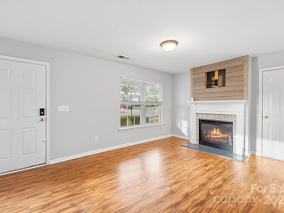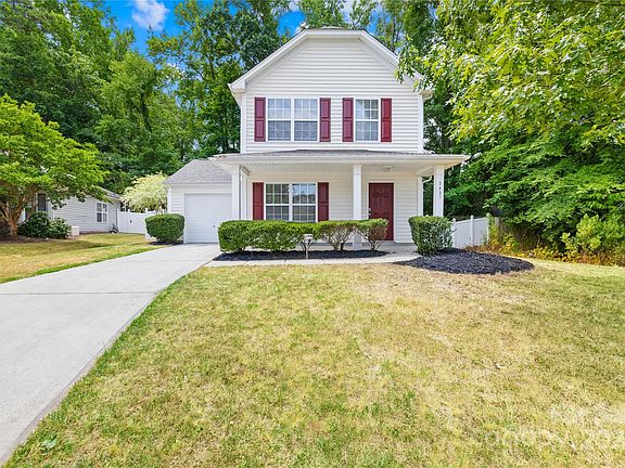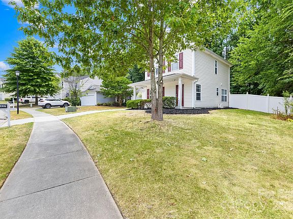 Step into this beautiful 3-bedroom, 2.5-bathroom cottage-style home nestled in a vibrant community known for its welcoming "farm" ambiance. The home features fresh neutral paint vinyl plank flooring throughout the main level, creating a light and bright interior that exudes warmth and comfort. Relax in the cozy living room featuring a gas fireplace with a marble surround, or enjoy the view from the covered front porch. This home sits on one of the largest lots in this section of the neighborhood, offering a generous yard that backs onto a picturesque wooded area, providing privacy and a touch of nature. The neighborhood boasts a million-dollar amenity center, complete with a pool, soccer field, tennis courts, basketball courts, playgrounds, and trails—perfect for an active lifestyle plus it is located within the highly sought-after Cabarrus County Schools district. Major expenses have been taken care of! New Water Heater 2022 and Roof 2023. New carpeting being installed week of 7/15