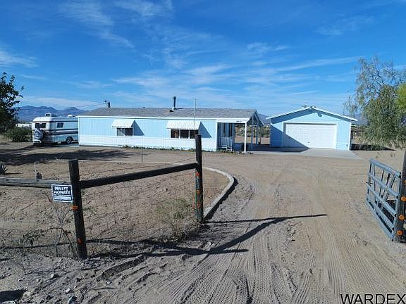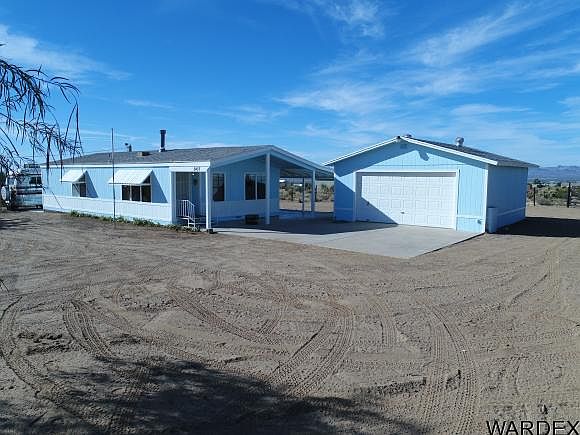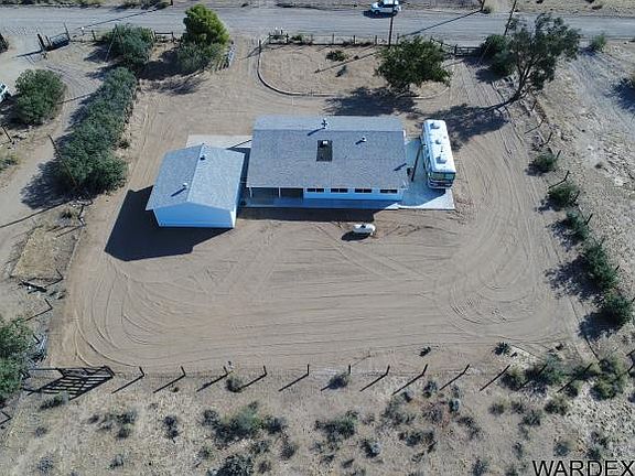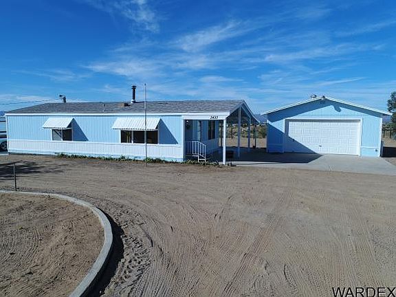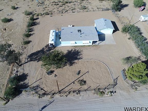 move in ready clean 2 BR 2 BA home on 1+ acre, on water line, close to paved Chino Drive**vaulted ceilings* fan in livingroom*open floor plan**24x24 detached garage**lots on concrete around home**enclosed 8x28 patio** chain link fence with gate up front, some field fence remainder** lots of fencing around home for privacy** A/C cooled** propane heated** mature trees in front yard and nice views over Valley and toward Cerbat Mountains in the east. Located close to most businesses in Golden Valley.