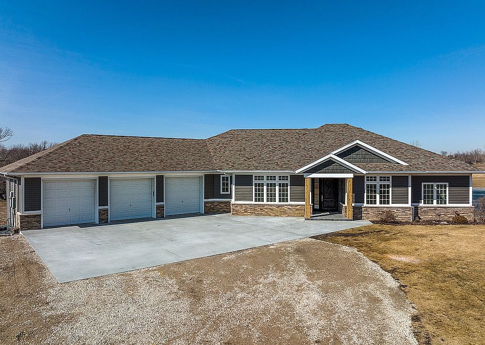 WOW House! Custom all concrete, 6250 + sq foot home on 3+ acre lot with 6 attached and heated garages on a 2-acre pond, with private beach. Buyer agents welcome. Everything about this house is bigger than life. 9'+ walls in every room of the house with a great room almost 21' high. Well sized bedrooms and main floor office that could be a 6th bedroom. A HUGE kitchen with expansive island. No steps from the garage to the master suite. The main floor laundry room has built-in ironing board, hanging rod, and tons of room in the same great, cherry cabinetry as the kitchen. The house lives so large that there are 2 sets of interior stairs to the lower level. The 3 stall heated garage is set up perfectly for older children's vehicles and entertaining with private entrance from below. There are multiple storage rooms or areas and a very large utility room in the lower level. The oversized hallway further creates the spacious and comfortable feel of the lower level. Full walk-out with 5 windows and 3 doors allowing lots of light and the real-life feel of no basement at all. The understated front of the house lets you privately have all you can ever want with a little humility! New 50 year shingles and vinyl siding installed during the summer of 2021. New maintenance-free North deck in 2020 and new rail in 2021. Beach to be "freshened" after the thaw by the current owner so the sand will be pristine. The front concrete was poured at the end of summer 2021. The Alburnett School bus stop picks up children right at the end of the driveway. This home was built using the Eco Block concrete system, with all exterior walls and floors on both levels being concrete! Thermal mass along with floor heat is amazingly efficient to heat and cool, and it is the quietest house you've ever been in. No highway, wind, or storm noises through the 12" to 17" walls of this house. The boiler system was designed to have endless hot water and plumbed to provide it everywhere! This home was designed to be lived in; to have children and grandchildren ride tricycles and hoverboards in, to have pool tables and ping pong tables, for outdoor beach parties of 50+ people, to house a car collection and outdoor toys, a life's worth of trophies and art, to raise a family in, and then be taken care of in, when you're old enough to watch life. All of the durability and security, and still have the style, quality, and richness of a showpiece home.