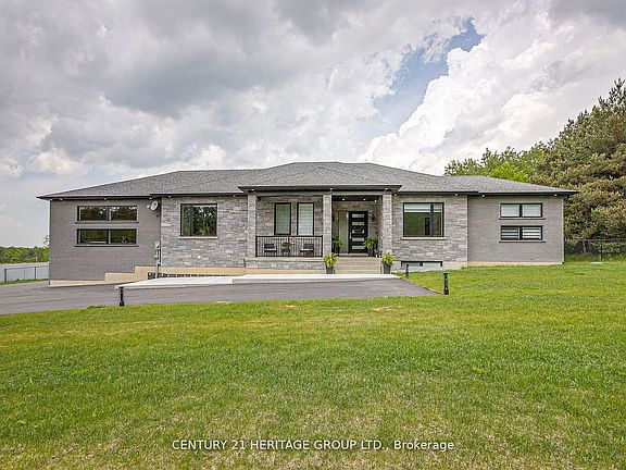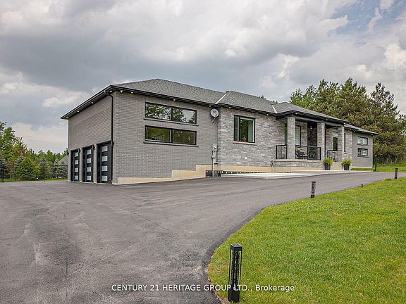 Captivating custom built bungalow on a 1.4 acre property in One of Bradford's most desirable estate homes subdivision. Great layout, upscale finishes consisting of 10' main floor, solid core doors, 2cold rooms, built in shelves, Oak staircase/railing, oversized kitchen island. Plenty of cabinet and counter space, great for family dinners or entertainers dream. Walkout to covered porch and large concrete patio. 3 car garage, lots of head room for hoist.9ft basement height , large windows, walk-up separate entrance. **EXTRAS** S/S fridge, S/S freezer, S/S double oven, dishwasher, washer/dryer, camera system, all elfs.