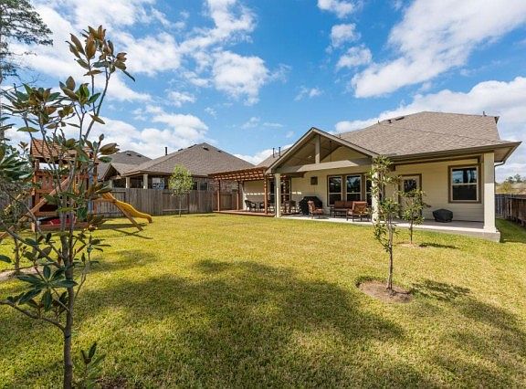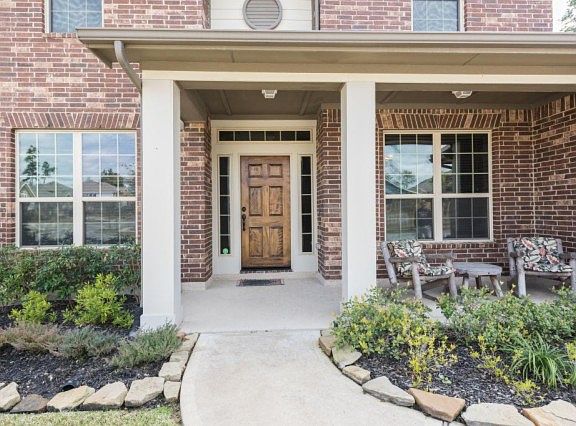 An over-sized lot backing up to walking trails of The Falls of Imperial Oaks, beautiful landscaping, front porch, and open floor plan. Gourmet kitchen, elegant dining, formal study w/French doors-custom built-ins. Upgrades include- wood floors, whole house gutter system, sprinklers, 47'back porch area,super master shower,direct vent fireplace,int/ext speakers,blinds,window tint, 5 burn/gas stove, 148'Texas Basement, PLUS MORE! Minutes from Exxon, IAH, Woodlands Town Center-this won't last long!