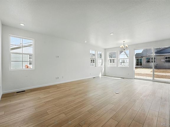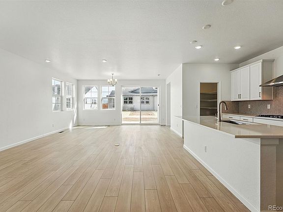 MLS#6756079 Built by Taylor Morrison, New Construction - Ready Now! The Sand Dune floor plan at Aurora Highlands offers a stunning paired-home design that blends style and convenience. Enjoy a bright and airy kitchen, dining, and great room with abundant windows that capture the beauty of Colorado living. Your spacious primary suite is tucked at the back of the home, featuring a walk-in closet and a relaxing 4-piece bath. Designed for effortless main-floor living, this home also includes a convenient laundry room. Hosting guests or sharing your space? The secondary bedrooms and full bath are thoughtfully placed at the front, offering privacy and comfort. Structural options added include: gourmet kitchen, bedroom 3 instead of flex room, and outdoor living.