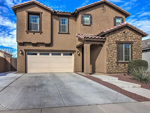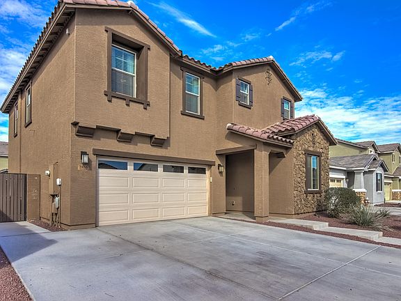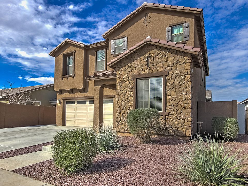 Looking for a pristine, well kept home with a clean, modern look, and low maintenance backyard space? Look no further! This 5 bed/3 bath spacious home features 9 ft ceilings, chestnut wood tile, stainless steel appliances, stone backsplash and granite countertops. Located in the Lehi Crossing neighborhood, close to the 202, orange groves, and Superstition Mountains, this home is the perfect location for just about anyone. Drive into your community containing a private community park and walking path, into the wide paved streets and your extended driveway. The home has great curb appeal with low maintenance desert front landscaping, a stone feature and large steps leading to the front door. The backyard is so easy with concrete slabs, turf, and a custom Gabon planter. See it all today!