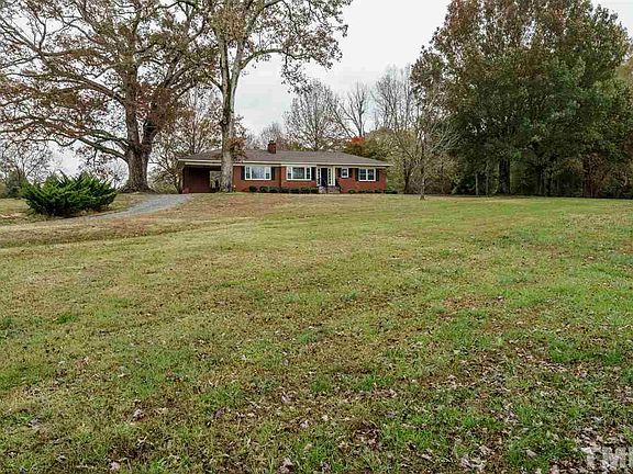 All-brick home on five rolling acres near Jordan Lake. County water! New roof 2015. Vinyl double-pane windows. Lovely hardwood floors in living & dining rooms & all bdrms. Huge country-kitchen. Built-in china cabinet in DR. Ceramic tile baths. Large deck. Detached wired workshop w/ 220. Orchard w/ peach, plum, apple trees. Flat high land, mostly cleared. Horses allowed. Fridge, washer & dryer stay. Carport. Minutes from Jordan Lake boat launch & parks.