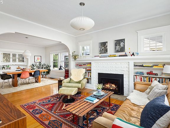 Stylish. Soulful. So SE Portland. | With elevated charm and undeniable curb appeal, this designer-owned bungalow sits quietly atop one of Richmond’s most beloved dead-end streets and features big windows, curated finishes, and spaces that flow effortlessly from one good moment to the next. With zero through-traffic and just steps from Division’s buzzy mix of bars, restaurants, and shops, it’s the best of all worlds. | The main level is all about natural light, wood floors and well-designed spaces. A large formal entry (rare for a bungalow!) leads into a sun-drenched living room with built-ins and a gas fireplace, then flows into a large dining room anchored by a vintage buffet. The oversized kitchen features a center island, plenty of storage, and access to outdoor dining. Two bedrooms and a full bath round out the main floor, with a third bedroom privately located upstairs. The basement is wide open and full of potential. The ceilings are high and the possibilities are endless: Family room, storage, second bath? | Outside, the good vibes continue: the front porch is made for evening hangs overlooking the lush garden; the side yard features string lights and grapevines over an outdoor dining area; and the backyard is a private oasis—ideal for firepit hangouts. A detached garage doubles as a party barn with ping pong, darts, and space for all your gear. | This block is special—neighbors look out for each other, and there’s a true sense of community you’ll feel from day one. All of this just steps from Division hot spots like Ava Gene’s, Salt & Straw, Lauretta Jean’s, Wellspent Market and Alpenrausch, recognized by Bon Appétit as one of the Best New Restaurants of 2024. | Updates include AC, gas fireplace insert, seismic retrofitting, radon system, new sewer line, Nest thermostat, and designer fixtures from George Nelson, Schoolhouse Electric and Hay. | Stylish, move-in ready, and full of heart - this one is pure Portland.