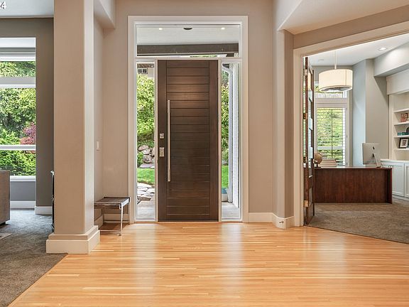 Experience the elegance and sophistication of this stunning home located at the top of private, gated West Hills Views Estates. You deserve to indulge in effortless living in this open layout designed for seamless flow and convenience! The main level was remodeled to perfection and transformed into a more modern aesthetic. High ceilings throughout make this home even more stately and open. The gourmet kitchen is complete with island, Wolf range & stainless steel hood, Subzero refrigerator, Cove dishwasher, warming drawer, instant hot water and more. Sparing no expense, even the pantry, mudroom and laundry room adjacent to the kitchen were also custom designed. The warmth of every room is tangible and the primary ensuite on the main level provides the ultimate space for relaxation. The bathroom has a luxurious soaking tub, tiled shower, heated floors. double sinks and expansive walk-in closet. The office with high ceilings, custom built-ins and walk-in closet could also serve as a bedroom. The lower level has 2 bedrooms and a full bath, large family room with outside access to the level patio below and an oversize storage and utility area. The large decks off of both levels naturally extend the living space into the great outdoors and lush, green tree-lined surroundings.  Gathering on the stone patio around the fire pit is yet another way to enjoy time with friends or family. Too many features to name so you'll find a robust list of updates when you visit the home. Located in the reputable Rieke Elementary and Ida B Wells High school district, it's also a quick commute downtown and easy access to popular employers like OHSU, St Vincent's Hospital, Columbia Sportswear, Nike World Headquarters and Intel. This is your invitation to make a move toward your dream home!