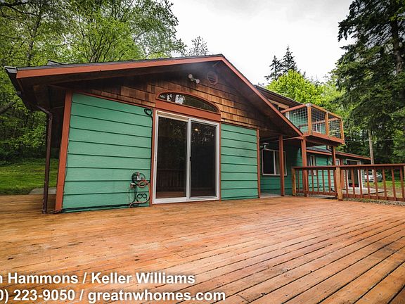On just shy of 3 acres, nestled among the trees and surrounded by a wrap around deck is this treasure of a home! Inside, enjoy a wood stove in the living room, generously sized living spaces, and vaulted ceilings. Upstairs is a unique master suite that opens up to a private balcony with fabulous views! Private acreage offers woods, pond and fruit trees. Whether you're enjoying the comfort of the inside of the home or relaxing on the deck taking in the fresh air, you're sure to enjoy this gem!