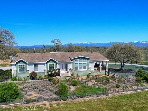 Foothill ranch with horse set-up you won't want to miss! Situated at the end of a cul-de-sac with an automatic gated entry and on 40+/- beautiful, useable acres with 2 separate homes, a 2500+/- sq. ft. shop, and peaceful pond with fish! The main house is 3040+/- sq. ft. with 4 bedrooms, 3 1/2 baths, bonus office room and 2 car attached garage. Double walk-in closets in the master bedroom, glorious all rock shower with double heads, huge kitchen with breakfast bar and walk-in pantry. Fully fenced back yard has a fantastic in-ground pool and spa with a pool bathroom, multiple patio areas that are great to entertain. Back-up generator, leased solar that is paid for the remainder of the 4 year term, whole house fan and heat pump system. The 2nd home is a 4 bedroom, 2 bath 2300+/- sq. ft. manufactured home with covered parking, fenced yard and covered porch to enjoy the views. Great for a rental income or mother-in-law set-up! The huge 50x50 shop includes a half bath and 220 power that is great for any projects. 14 ft. wide pull through doors make it perfect for an RV or boat storage. Tack room shed is conveniently next to the shop with a cement wash rack for your horses. The 8 large horse paddocks with pipe fencing, 1 paddock is an enclosed stall, large riding arena with stadium lights and a round pen make this a wonderful home for your horses. Take a ride on the 40+ beautiful acres that are full fenced and cross-fenced for safety from the road and from getting into the house areas. Water access throughout the property with 2 wells. RV parking and hook-ups including a septic. This property adjoins large ranches offering you wide open spaces and lovely mountain views of the Sierras from both homes!