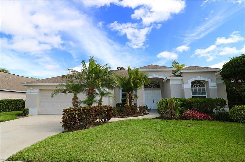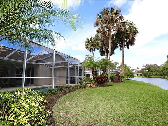 Well maintained, and private Oak Trace home! Whether you are preparing to become a Snowbird or relocating for work, Or, are looking for a home on a friendly, quite street with very little traffic. Look no further! You'll simply fall in love with this 3 bed 2 bath home that over looks a small lake with views from every room and buffered by trees and shrubs, adds plenty of privacy to this little charmer! Many designer touches have been recently added including new ceiling fans, new lighting in the dining room and bedrooms,and a freshly painted interior and pool deck.. The kitchen has 42" solid oak cabinets, a breakfast bar, a pantry and, plenty of storage. Vaulted ceilings in living room, dining room, family room, and kitchen with cafe nook. Generous sized master suite with sliders to lanai. Master bath featuring garden tub, separate shower, private water closet, dual sinks and double walk in closets. Second bath has pool accessibility. Low, low hoa fees. Oak Trace is a quaint inland community with reasonably priced homes that are conveniently located to both downtown Sarasota / Bradenton and, minutes to area beaches and UTC (University Town Center). Furniture negotiable with separate agreement.
