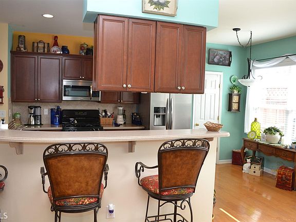 Great Value on this stunning spacious 3BR/2.5BA fee simple Townhome w/2 car garage in sought after Wyndham Community. Kitchen features solid surface c-tops, SS appls,Gas range,pantry,pullouts in lower cabinets w/view to family rm. Hrdwd flrs w/walk out balcony in front & deck in back. Great open flrpln w/fplc. Hardwood flrs upstairs,a lg Mstr bedrm w/trey ceilings, great closet space & natural light. Dual vanities in Mstr Ba w/garden tub & sep shower. 2nd upstairs bedrm has walk-in closet & own private bath.Huge bedrm on ground flr w/walk-out patio.2-car garage.