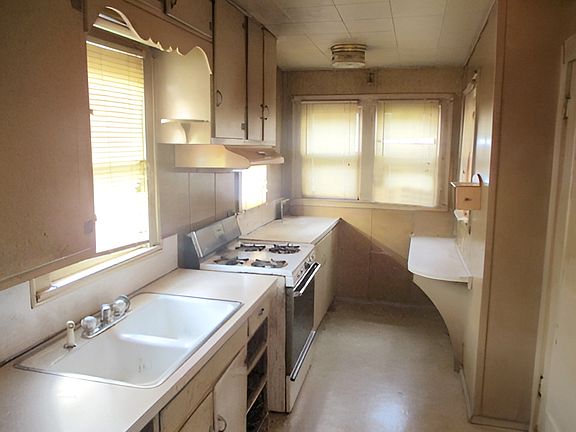 2 bedroom, 1 bath bungalow with basement for storage plus 2 car detached garage and covered front porch.
