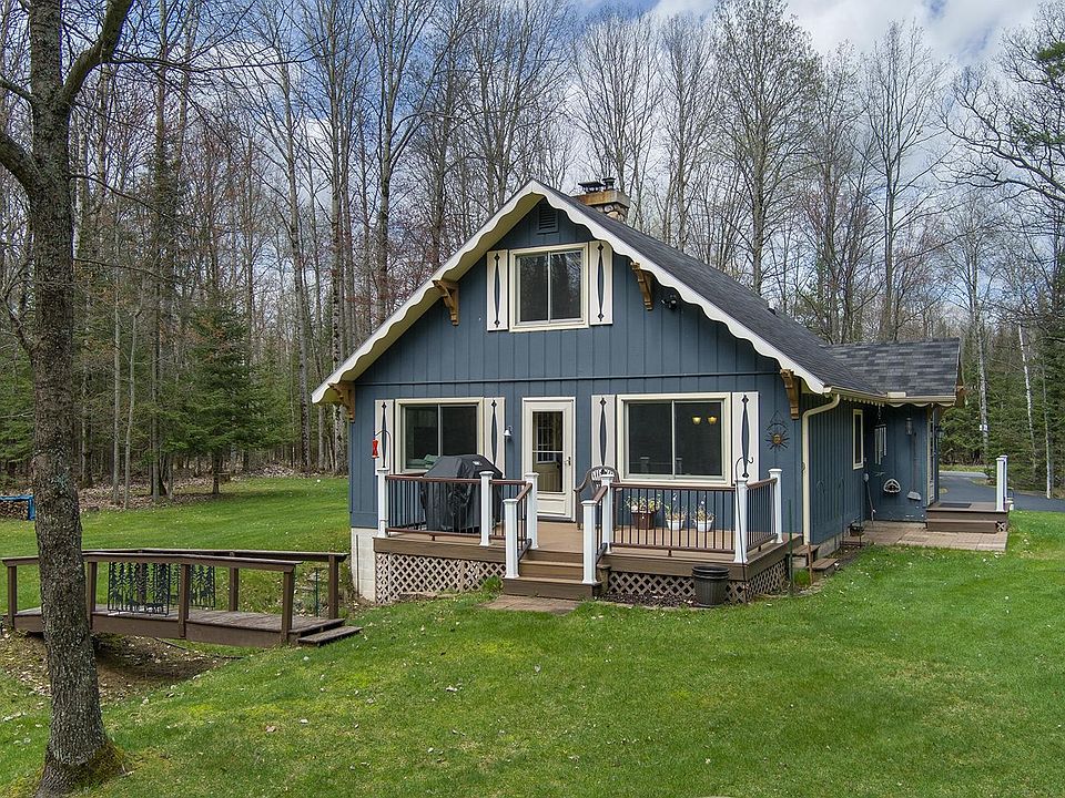 Picturesque 3 bedroom, 2 bath home nestled on 8 wooded acres just East of Eagle River. Renovated/remodeled in 2020 the main level area features a beautiful new kitchen with SS appliances, bright living room with wood burning fireplace, wood beams, crown moldings, custom window treatments and large windows overlooking the wooded yard, dining room, primary bedroom and full bath. Second level includes two bedrooms and half bath. Lower level features a rec room, utility room, wood burner and plenty of storage space. Store all your Up North Toys in one of the two detached garages. Composite deck overlooks the wooded yard. Private yet close to town with some of the Northwoods most prized lakes as well as the 28 lake Eagle River/Three Lakes chain nearby. Some of the area's premier snowmobile and ski trails plus the 642,000 acre Nicolet National forest are literally minutes away. Make your plans today to view this property. Opportunities like this are few and far between.