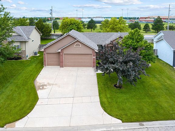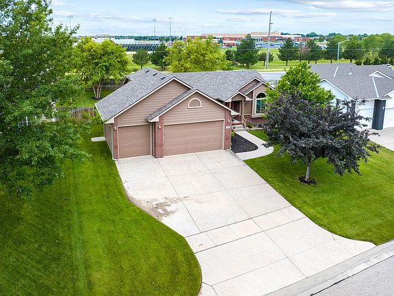 This well cared for home 4 bedroom, 3 bath with 3 car garage in the Maize school district has so much to offer from its manicured lawn to its fabulous interior features. Walking into the home you find a spacious living room with large windows allowing natural sunlight into the space! This split bedroom floor plan holds the primary room to one side adding additional privacy, you will love the size of this primary room and ensuite! The kitchen offers beautiful solid countertops with ample cabinet space and all kitchen appliances remain with the home. In the basement you will find a grand family room which has a wet bar, great for entertaining or enjoying time with the family. Downstairs holds an additional bedroom and full bath along with great storage. And do not miss the backyard with sprinkler system and irrigation well making care and maintenance a little easier!