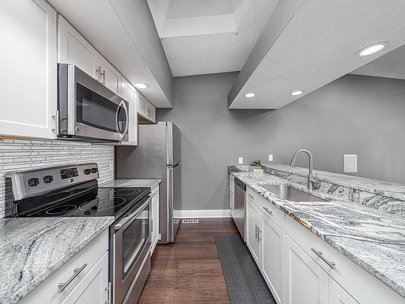 Modern and Updated 3 bedroom condo ready to move into! In the highly sought-after Pleasant Valley school district, this home features an attached garage and boasts numerous upgrades. Upgrades include a built-in surround sound system, bamboo flooring, fully renovated kitchen with granite, farmhouse sink and stainless-steel appliances. The finished basement features luxury vinyl flooring and second bathroom! The main bathroom has undergone a complete transformation, featuring custom tile work and stylish glass shower doors. The exterior features newer siding, roof, windows, and doors. Conveniently located. Pets and Rentals Allowed per HOA. All appliances stay, including washer and dryer.
