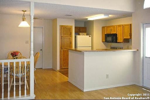 Enjoy easy living in this lovely townhome located near major highways and Fort Sam Houston. Enter living area complete with high ceilings, wood burning fireplace, and large windows give abundance of natural light. Living dining combo and open kitchen with breakfast bar. Generous master bath with walk in closet and updated bath. Luscious landscaping and sprinkler system maintained by HOA. Patio deck and large backyard surrounded by mature trees and privacy fence are ideal for entertaining.