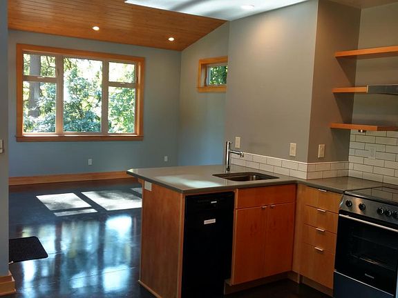 Located on large, newly landscaped lot in a quiet neighborhood. 8 minutes to OHSU. Albertsons (walking distance), New Seasons and Fred Meyers, numerous restaurants and other shopping amenities and green areas nearby. 800sf, 2 bedroom, 1 bath, living, dining, storage closets and utility space. All new appliances- Frig, dish washer, stove/oven, microwave and washer/dryer. Vaulted T&G wood ceilings and large windows with wood blinds. Southern exposure. Epoxied Concrete floors. Floors are insulated throughout. Tiled shower. Heat and air conditioning. Access to large, newly landscaped grounds. Upkeep by owner. Private outdoor patio area. Off-street parking for 2 cars only (in-tandem). No on-street parking. Utilities paid by tenant: electricity, water/sewer and phone/internet/cable. Included in the rent is garbage and recycling. NO SMOKING of any kind $2000 1st month and $2100 last month. Owner pays trash/recyclables. Tenant pays electricity, water and sewer and phone/internet/cable.
