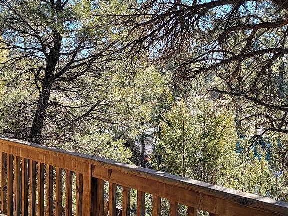 Come see this cute doublewide home in the mountains that sits high on a hill with a great back deck, in the tall pines. This 3 bedroom, 2 bath home boasts dual pane windows, new HVAC for central air and heat, upgraded kitchen cabinets and counters, new disposal, T&G vaulted ceiling, a great pantry/laundry room and metal roof. This home sits on a large double lot with two sheds that will convey and lots of parking available for family and friends to visit or to park your RV. There is NO HOA. This is great for full time, part time or short term rental year round.