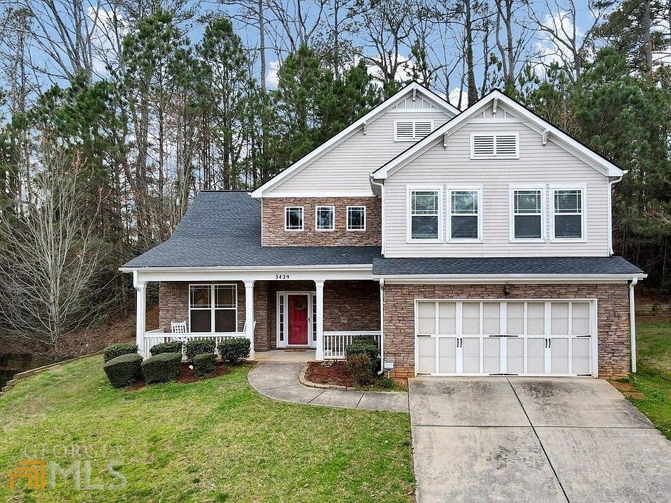 ** Open House on 3/11 from 2-4pm** Stunning 4 bedroom, 3.5 bathroom 3 sides Stone Accent home. Enter into a two-story foyer, formal dining room, spacious kitchen with granite countertops, and ample cabinetry. And a large family room with a fireplace. PRIMARY BEDROOM ON MAIN with a large walk-in closet with custom closet organizer system, and ensuite spa like bathroom with clawfoot soaking tub, semi-Seamless tiled shower, dual rainfall /standard shower head and double vanities. In-hall laundry room and half bath on the main floor. The second floor opens to a large loft area that can be used as a study/office/library as it contains a built in desk and shelves or it can be used as a play area. Upstairs you will also find 3 secondary bedrooms, one with and ensuite and can be used as a TEEN OR IN LAW SUITE, and a flex space. Enjoy outdoor living either on the sunny rocking chair front porch or enjoy a relaxing evening under the stars on the back deck. Conveniently located near Camp Creek Marketplace - where you have everything you need for a one-stop shopping experience. Minutes away from Wolf Creek Amphitheater, Wolf Creek Golf Course, and close to Hartfield Jackson airport. You will want to call this HOME!