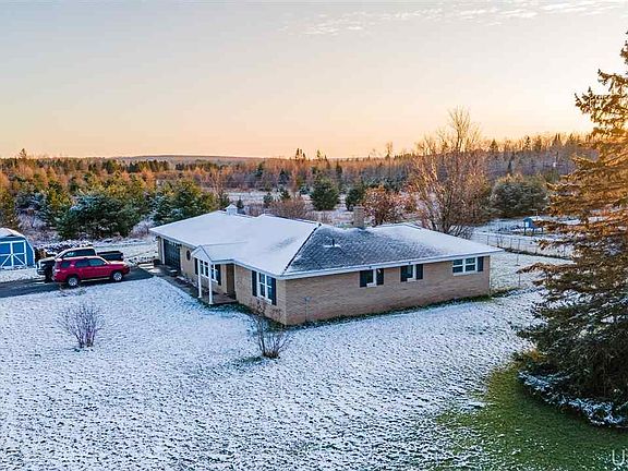 Where does one begin with this amazing home and property? A beautiful 3 bed, 2 bath 1 story home with an attached 2 car garage set on 119 acres of sprawling mixed habitat. With abundant wildlife and loads of room to roam, this is ideal for the outdoor enthusiast, hobby farmer, hunter, hiker, bird watcher, etc... Enjoy different zones of habitat throughout the acreage. Approximately 60 acres of hardwoods/mixed forest, plus open fields with walking paths, apple trees, a pond area, a pine grove, and transition areas in between. Behind the home is a traditional Finnish homestead. One of the many neat perks of this property is an authentic cordwood barn near the Finnish homestead. To make this place even more unique, it used to be a 7 hole golf course. The main home is very well updated throughout. Entire main floor living includes a large living room, updated kitchen, dining/lounge area, and an attached breezeway/sunroom. Set apart from the main living area are the three bedrooms, including one with the full master bathroom, and another full bathroom. Appreciate plenty of storage space with many closets throughout. Outside you can find the current owner has a fenced in garden, strawberries, blueberries, plums, cherry trees, raspberries, elderberry, pear, rhubarb, and honey crisp apple trees. There is a fenced in backyard as well a large fenced in chicken coop area. Additional treated wood posts and wire can be available with the property if desired. A very rare opportunity to own a home on a parcel of this size close to Houghton. Approximately a 20 minute drive into town, this is the perfect location to have your countryside home, but have a quick drive into town for whatever one may need. Around 12 miles from Chassell and Portage Lake, and a quick drive to Otter Lake, one would have access to a ton of recreational options beyond the ones you'd find on the property itself. To really appreciate this property, you need to hear the sounds and feel the serenity of a quiet and peaceful evening as the woods and fields spring to life with the setting of the countryside sun.