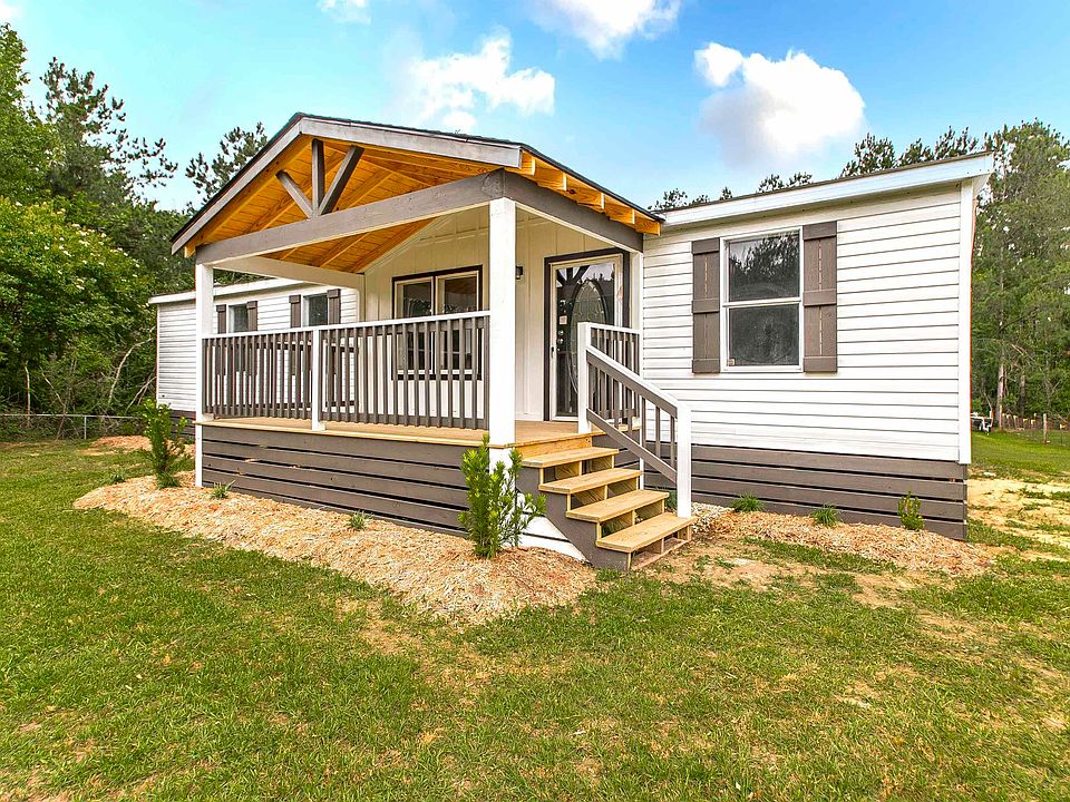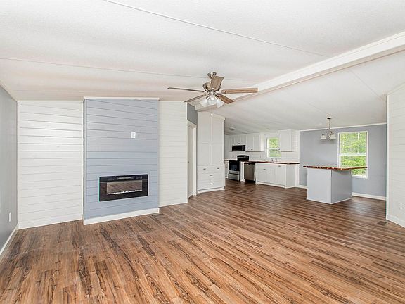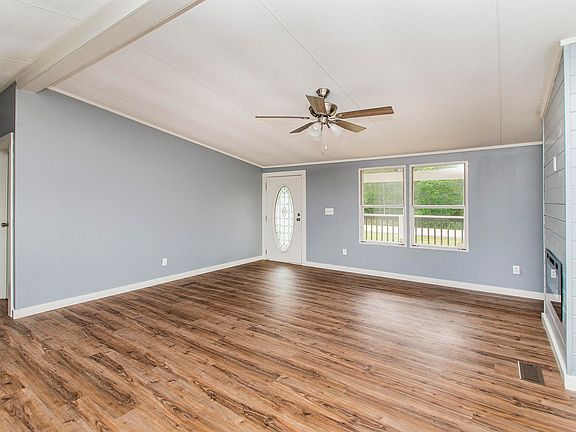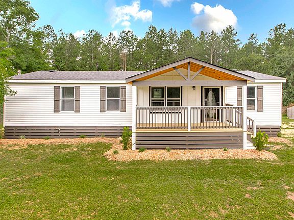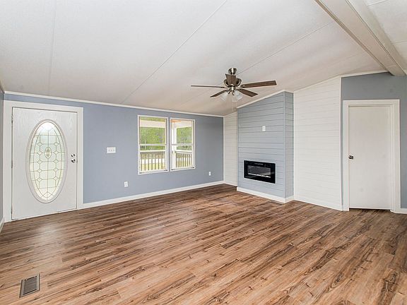 Welcome to your serene sanctuary! This newly renovated 3-bedroom, 2-bathroom mobile home nestled on half an acre offers contemporary charm with a touch of rustic elegance. Upon entry, you're greeted by the inviting living room featuring a sleek electric fireplace set flush against an eye-catching accent wall. The open floor plan seamlessly connects the living area to the rest of the home, enhancing the sense of space and flow. The master bedroom, thoughtfully positioned on the opposite side from the two additional rooms, ensures maximum privacy and tranquility. A spacious covered porch adorned with wooden posts provides the perfect spot for relaxation and entertainment, while also offering added safety. Inside, the kitchen boasts modern amenities with wooden floors and countertops, a double sink, and an abundance of cabinets with exposed shelving. A wall pantry with drawers attached to the bottom provides convenient storage solutions, while a breakfast area with an island and a separate formal dining space cater to various dining preferences. For added safety and convenience, an additional access door next to the dining area serves as an emergency exit. The master bedroom features a walk-in closet sealed by a stylish gray barn door, adding a touch of rustic flair. Barn doors separate the master bedroom from the luxurious ensuite bath, which includes a double vanity and a huge marble-tiled shower. Entertainment is made easy with a wet bar and additional cabinetry to store linens and personal care items. Outside, a spacious yard on all four sides invites outdoor gatherings, offering ample space for a pool, additional storage, or other recreational activities. Located just a 3-minute drive from Mrs. Heather's Strawberry Patch, this home combines modern comfort with convenient access to local amenities, making it the perfect retreat for those seeking both relaxation and convenience.