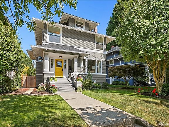 This Stunning Craftsman was fully renovated in 2016. Inside you will find cooling A/C, gorgeous millwork, hardwood floors, pocket doors, & Chef's kitchen opening to the entertaining sized deck & fenced backyard. Enjoy Western vistas of the Cascade mountains. Amazing sky-lit master bedroom suite w/walk in closet. 3rd floor play area. Lower level with rec-room, laundry, guest suite and office. Darling potting/play shed + one car garage. Just blocks to all Capitol Hill has to offer!