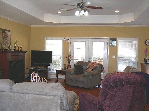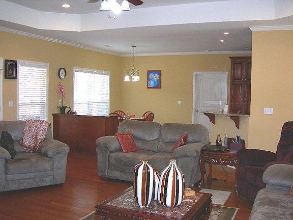 The large family room with dazzling tray ceiling is the center of this lovely home. A well appointed kitchen includes granite countertops,stainless steel appliances including convection range with a warming oven and stunning wood cabinets. Master bedrooms includes a beautiful tray ceiling as well as a large bath with a shower, garden tub, double vanities and large walk-in closet. Covered deck, fenced backyard, alarm system, sprinkler system and double carport complete the picture.