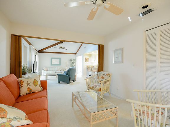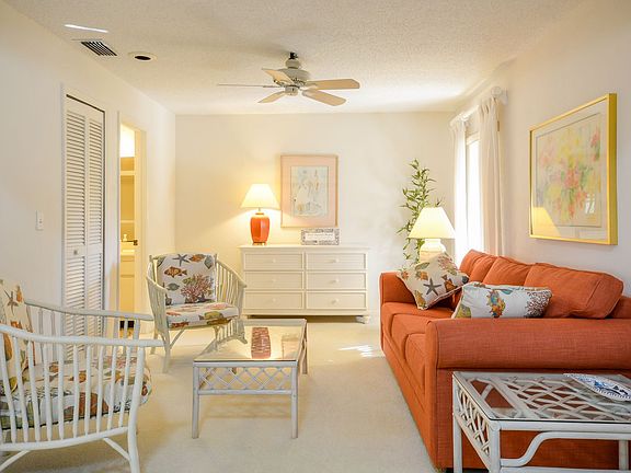 Welcome to this inviting Braeburn villa at Sugar Mill Country Club, a light-filled 2-bedroom, 3-bathroom accommodation. The spacious master bedroom features a king-size bed, its own flatscreen TV, a walk-in closet, and a private bathroom with a shower. The second bedroom also offers a king-size bed, its own flatscreen TV, and a private bathroom with a shower. Unique to this villa is the den, connected to the living room, which can be closed off to create a third bedroom. The den is equipped with a queen-size sleeper sofa with a memory foam mattress and has its own full bathroom. The fully equipped, open kitchen is connected to the morning room, which includes an additional one-person sleeper sofa. The large, screened patio offers a wonderful place to relax, while the expansive deck is perfect for enjoying a barbecue. This home includes a large garage with a washer and dryer, although parking is not allowed in the garage. Free Wi-Fi is available for use. The villa is designed with comfort and convenience in mind, featuring a fully equipped open kitchen connected to the morning room. The spacious living areas, including the den with a queen-size sleeper sofa, provide ample space for relaxation and entertainment. The large, screened patio and deck offer additional outdoor living space, perfect for enjoying the serene surroundings. The villa offers access to the community pool and the private 27-hole Country Club, ideal for those who enjoy golfing and tennis. While parking is not allowed in the garage, ample parking is available outside. Situated within a 2-minute walk from the quiet community pool, Sugar Mill is a secure and safe gated community with a private 27-hole Country Club. It is located 6 miles from the beach and an hour's drive to all the Orlando attractions. New Smyrna Beach's Central East Coast location allows easy access to many of Florida's attractions, including Orlando, Disney, Universal Studios, Kennedy Space Center, Daytona Beach, NASCAR racing, and Florida's oldest city, St. Augustine, all within close driving distance. Smoking and parties are not allowed in the villa. Check-in and check-out times are flexible, and the villa is managed by a trusted partner to ensure comfort, cleanliness, and service. A laptop computer is not included in the home office set-up.