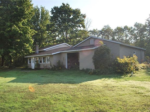 There’s lots of potential in this one-bedroom ranch!  There’s an open floor plan with kitchen/dining/living room.  The living room is good size with a big picture window.  There’s a small office area that leads to a nice size bedroom.  The full bath also has a stacked washer and dryer.  There’s a back sunroom/living room with wood stove to enjoy the views of the back yard.  This could be a 2nd bedroom!  The attached garage is oversized and could easily fit four cars. BONUS: Also located on this property is a 60x40 pole barn with 10 foot “lean to” addition.  The barn has four overhead doors and was set up and used as a machine shop and heavy equipment storage.  There’s plenty of power for all kinds equipment.  All of this is located on approx. two country acres. All contents of the house, garage, and barn are included in the sale.