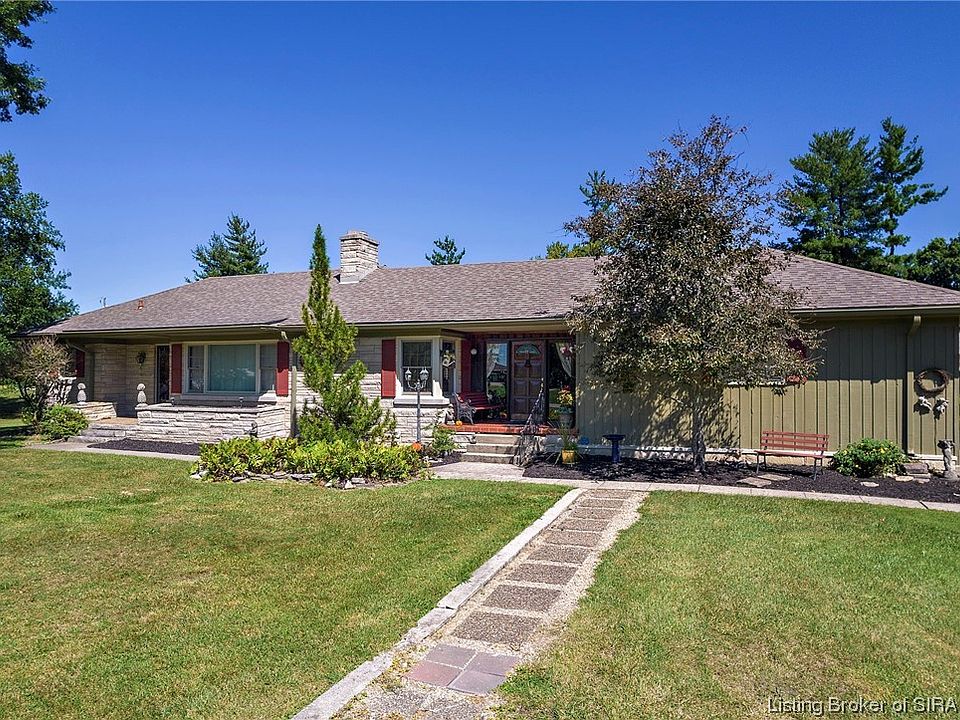 Welcome to this quality custom built 3 bedroom Bedford Stone home over a full unfinished basement in quiet subdivision on Madison's hilltop. This beautiful property is situated on a 1+ acre lot with a 2 story yard barn. The home features a living room with a fireplace and built in bookshelves and a dining room with beautiful built in custom cabinetry. A light filled sunroom offers access to a stone patio garden overlooking the back yard. The unfinished basement has the potential for more living space and/or storage. A 2 car attached garage and a 1 acre lot offering the potential for another outbuilding makes this a unique hilltop property.