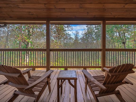 Great Rental Opportunity on a gorgeous cabin- enjoy all the benefits of the great outdoors and a short walk to Toccoa River access with the ease of being 2 miles to Downtown Blue Ridge and never leaving a paved road! So many upgrades inside and out, hot tub, wrap around 12 ft. porches, rustic outdoor fireplace, and more! All wood interior with stylish contrast trim work, French doors, custom walk-in shower, stone fireplaces, pocket doors, and well-appointed kitchen made for entertaining. Great room with cathedral ceilings, exposed beams, fully finished basement, and room to sleep 10 plus! Selling fully furnished, hot tub, TV's, the works! This cabin truly offers a mountain getaway with all the conveniences of in-town living!