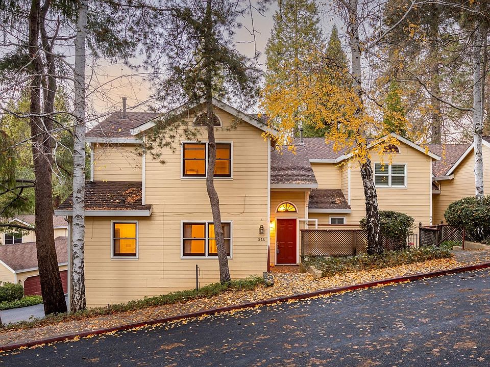 Simplicity at its finest. Rare find in the exclusive Woodbridge Townhome Development located within walking distance to Historic Downtown Nevada City, shopping and some of the best schools in Nevada County. This corner unit boasts a spacious floor plan flooded with natural light with a great flow of space including the primary bedroom on the main level complete with huge walk in closet, along with the guest bathroom, laundry, kitchen, dining, and living room plus two outdoor spaces to enjoy; both the patio entry area as well as the private rear balcony. Upper level offers another bedroom with another large walk in closet, full bathroom and an office with an open space to view the living and dining room from above. What makes this home special is it needs updating (flooring and paint will be a must) but nothing has sold at this low of a price per square foot in many years in Woodbridge. This is an opportunity to create and design the home you desire and build equity simultaneously. All exterior repairs and grounds are maintained by the Home Owners Association as well as insurance on the structure; all you have to worry about is enjoying your home. Simple, easy living. Welcome to Woodbridge.