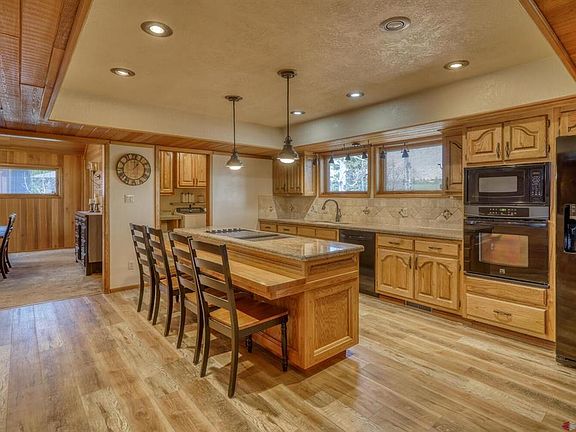 This spacious Scandinavian style home boasts majestic mountain views and is conveniently located just steps away from the golf course, dining, and shopping. Observe the hot air balloons and the spectacular sunsets, from the private front decks of this home. Host an outdoor party against a pristine mountain backdrop, on the large multi-level back deck. Inside, find master craftmanship in the tongue and groove vaulted ceilings and walls, the floor to ceiling rocked fireplace, and the custom-built kitchen island. Entryway closets (complete with drains) and delicate stained-glass window accents, add to the unique features of this home. Multiple outdoor spaces, a game room with wet bar, a large family room, a spacious kitchen and 3 additional parking spaces out front make this home well suited for large family get-togethers. If solitude is what you seek, the secluded top floor master with private deck, two guestrooms with ensuite bathrooms (each on their own level) and the main floor guest room with separate bath allow you, your family, and your guests to enjoy some privacy. Need storage? This house has it. Multiple storage closets both inside and out, a large 2 car garage and adjacent workshop with crawl space storage, will satisfy all your storage needs. This gorgeous property has so much to offer. Don’t miss out on your opportunity to own this distinctly extraordinary home, in the heart of uptown Pagosa Springs.