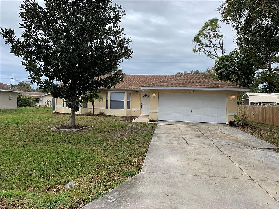 CLEAN FRESHLY PAINTED AND READY TO MOVE IN! BUYER'S REMORSE IS YOUR GOOD FORTUNE! This adorable home is a great value for first time home buyers, snowbirds or anyone wanting minimal maintenance. This 2 bedroom split plan home features a living room/dining combo with a breakfast bar separating the living room from the kitchen. The CATHEDRAL CEILINGS make if feel open and airy. The dining area has a slider to the lanai with ceramic tile and overlooks a FULLY FENCED BACK YARD great for pets or little ones. The SPLIT PLAN is great when having guests. The Master bedroom has a pretty bay window and en-suite bath with WALK IN CLOSET and the bath has a door the lanai for use as a pool bath if you ever add a pool. You'll have no worries here...this home has a NEW ROOF IN 2018, A/C 2013, WATER SOFTENER 2016, AERATOR 2017, WATER HEATER 2017 AND THE SEPTIC WAS PUMPED IN 2019. The 2 car garage has a pull down attic stair and HURRICANE GARAGE DOOR. You'll have peace of mind with the pests of paradise because the seller had the home preventative treated for termites and a 1 year contract is in place. They also have a pest control contract that was just renewed this month. South Venice has a voluntary association where if you choose to join, you'll have access to a boat ramp and a ferry boat that takes you to a private beach. This home is located in flood zone X, which means no worries on high priced flood insurance. This is a clean, affordable, well maintained home that won't last long!