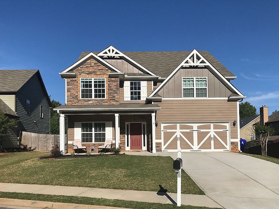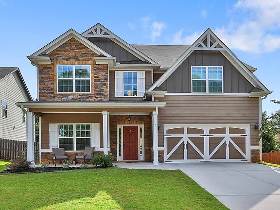 Gorgeous Craftsman Style home is a Must See! It features 4 bedrooms and 2.5 baths with a 2 car attached garage. The first floor offers a formal sitting Room/or Office, Large Dining Room with Coffered Ceilings, Beautiful Kitchen with granite counter tops, stainless steel appliances, walk in pantry and large Island, perfect for entertaining; Breakfast area, Spacious family room with Fireplace and Beautiful Board and Batten accent wall, mudroom with a mud-bench, private guest bath and Laundry Room. Upstairs you will find the Huge Master Suite with sitting area, his and hers closet. The spa style master bathroom has separate his/hers vanities, custom tiled master shower with seat and glass enclosure. 3 large bedrooms and full bath. Entertain out back in the Cover Back-porch and extended patio, Tv connections available, fenced in backyard perfect for relaxing with family and friends! Home is exceedingly energy efficient featuring spray foam insulation, home wrap moisture barrier, insulated exterior doors and windows. Interior recently painted, Hardwoods thru main, tile in all baths and laundry, granite in kitchen and baths. The subdivision offers a clubhouse, pool, park with fishing pond, playground, and a walking trail. It is conveniently located near shopping, dining, entertainment, hospitals, interstate access, and so much more. Hurry before this Gem is Gone!