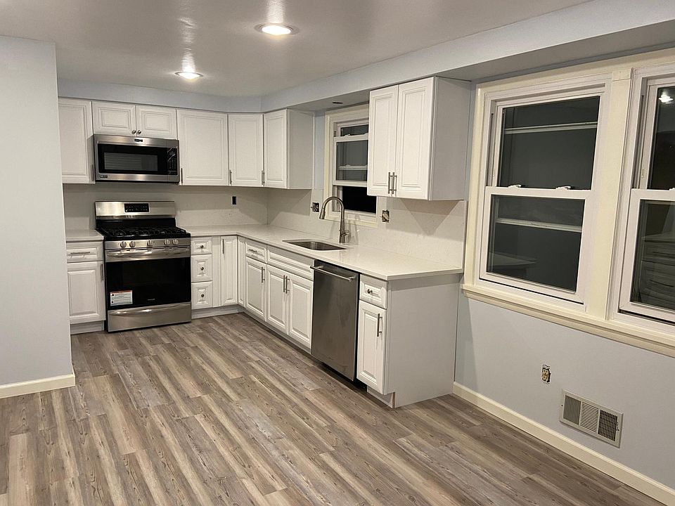 This newly remodeled colonial style single-family home is centrally located in the heart of Monroeville with easy access to both shopping and entertainment. It offers spacious 4-bedroom and 2-1/2 bath with new amenities, which include an elegant, fully equipped kitchen with new cabinets, stylish quarts counter tops and backsplash, stainless appliances, brand new bathrooms with all new updates, and 2 roomy living room and family room with recess lighting and a fireplace for family entertainment and gathering. What is even more charming is the original hardwood floor that's well maintained and refinished for everyday use. The house has a lot of natural light. It is available 9/1. sorry do not accept section 8.