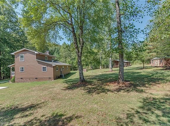 Nestled near the back of 6.52 private acres w/no restrictions & a creek, this home could be the perfect parcel for a homestead or just your spot for pure tranquility! The landscape and exterior have been meticulously maintained with two outbuildings, brand new HVAC, 2012 roof and recently installed gutter & leaf relief. There's a cozy covered porch as well as a screened side porch. Inside, the layout is a little different with the entire upstairs dedicated to a large master suite w/huge closet. Dark hardwood floors carry throughout the dining/kitchen area upstairs and into the master. Two additional bedrooms and laundry on the main level w/spacious kitchen & abundant cabinetry. A very sweet and peaceful place to call home! Furniture and 60" zero turn mower are negotiable.