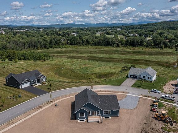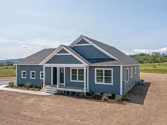 New construction one-level-single-family house at Claybrook, now ready for occupancy. Charming exterior with front porch and side-loading garage; wonderful, spacious interior. Upgrade finishes throughout including Craftsman trim, plank and ceramic tile flooring, and granite counters in kitchen and baths. Kitchen with soft closing cabinets, undercabinet lights, honed granite counters, island, and stainless appliances opens to dining and large vaulted family room with ceiling fan and beautiful gas-burning fireplace with barn-beam mantel. Spacious primary suite with tray ceiling, walk-in closet, and double vanity. Good sized office/bedroom and third bedroom on first floor with privacy from main living areas. Great mudroom with built-in bench and coat hooks accessed from garage. Huge, insulated basement with daylight windows. Energy efficient construction, built to Vermont's rigorous Energy Strech Code, and pre-plumbed for roof mounted solar panels. Central air conditioning and state-of-the art-heating with both heat-pump compressor and energy star furnace. Great lot with mountain views overlooking common land at both the front and rear of home. Driveway to be paved. Claybrook is walking distance to Vergennes' vibrant downtown and offers over 60 acres of common land. Listing agent is a member of River's Edge Associates LLC.