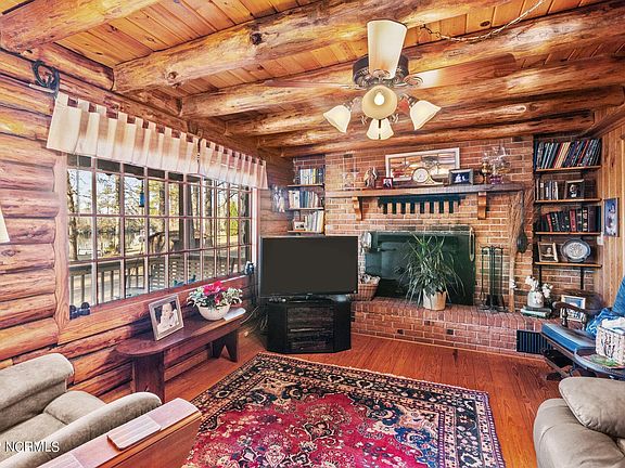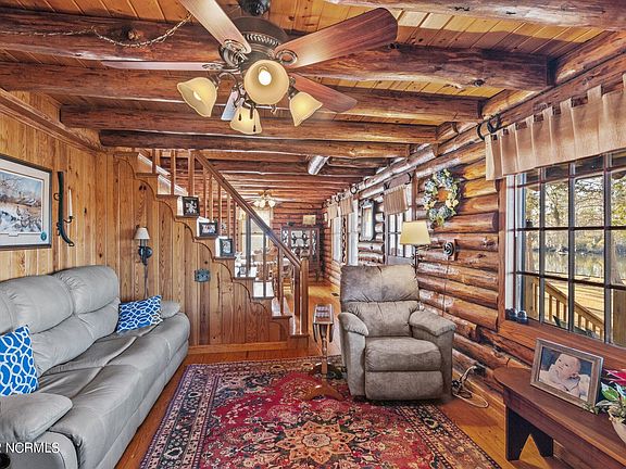 Waterfront Mini Farm on pristine Blounts Creek. Catch trout off your dock, launch your canoes and kayaks, and keep your boat at your own deep-water dock. Very quiet location with great scenic views of eagles, ospreys, and many other types of wildlife. Beautiful 3 bedroom log home on 27+/- acres which has many updates including updated kitchen with stainless appliances and quartz countertops. All 3 bathrooms have updates. Master bedroom has new paint and carpet. The property is not in a flood zone, no HOA, no city taxes, or restrictions. Large, detached garage/man cave with bathroom and kitchen area. Cleared land that would be ideal for horses, farming, etc. Well established timber on approximately 16 acres of the property.