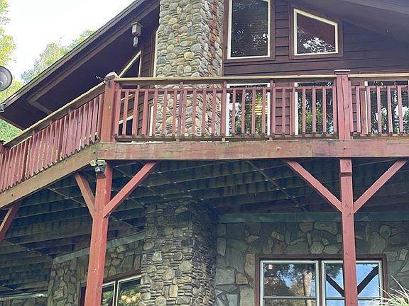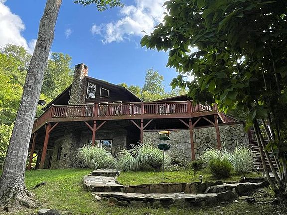 Enjoy this well built lovely home in the higher elevation of the Blue Ridge Mountains. Cool mountain breezes and halfway up to Roan Mountain. Beautiful layout, vaulted ceiling in the great room and exceptionally large windows to enjoy the the views. White oak floors throughout the main floor, tile baths and kitchen. Cork flooring in the finished basement. Two stone fireplaces, one is propane and one is a wood stove. Huge wrap around porch and private setting. Pretty summer views will be stunning with some clearing on this six wooded acres. Two driveways for lower and upper parking. Perfect for a summer getaway or year around living.